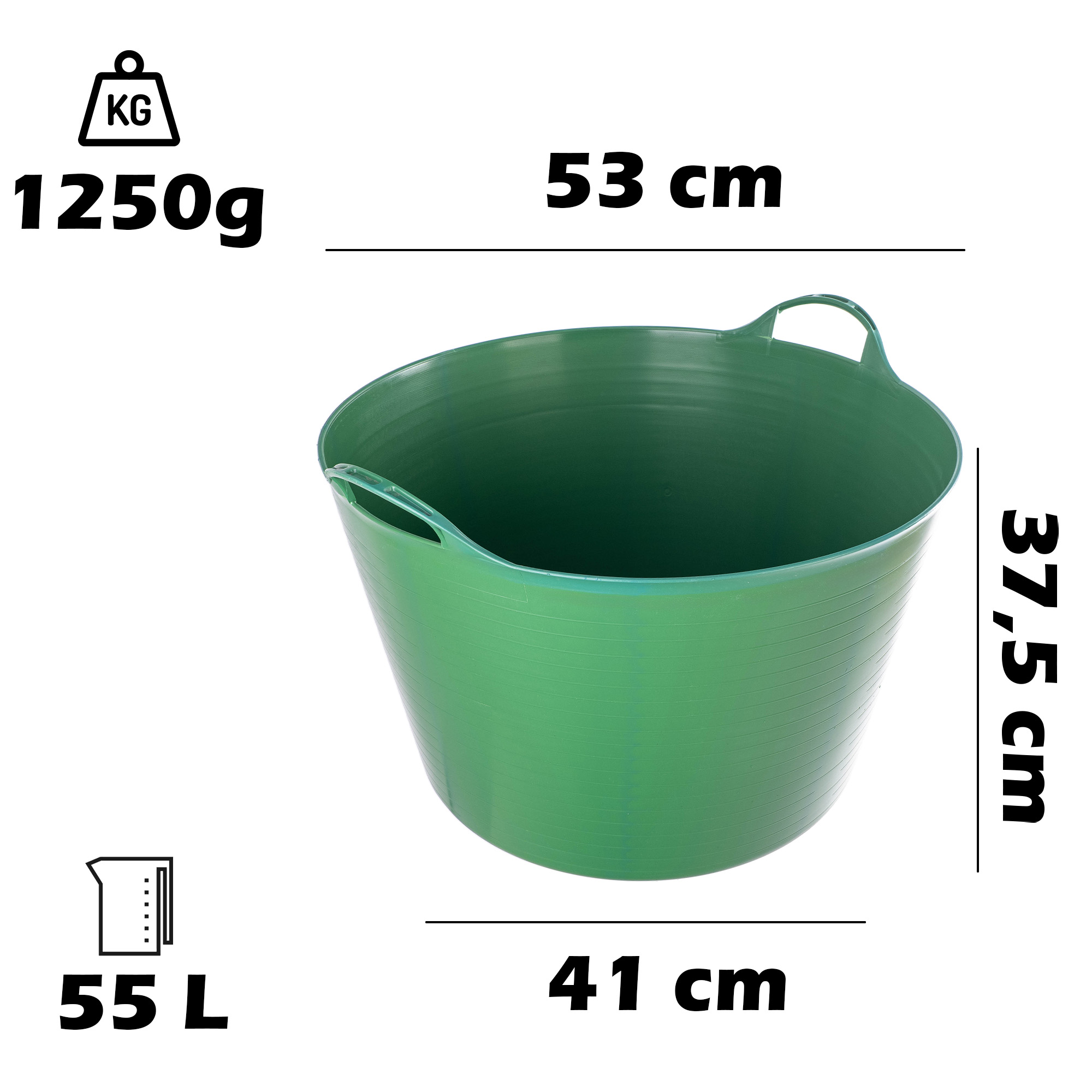 Vielseitiger und besonders praktischer flexibler Behälter, ideal für den Einsatz zu Hause, im Garten, in der Garage oder auf der Baustelle. Hergestellt aus flexiblem, gleichzeitig robustem Material, das auch bei hoher Belastung nicht bricht oder sich verformt.